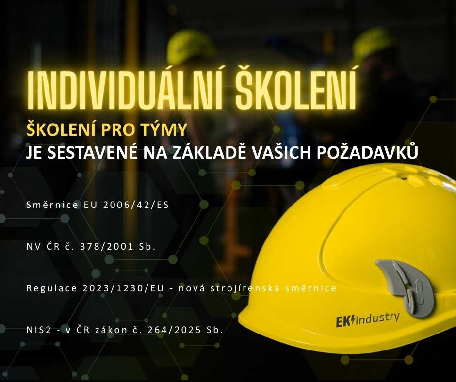 Pomáháme skvělým odborníkům s implementací norem a nařízení přesně na míru jejich provozu. Odborně zaškolujeme pracovníky a obsluhu na nově vzniklé návody k obsluze, také, aby se orientovali v legislativě a chápali proč je na strojním zařízení nutné mít ochranné prvky a k čemu slouží.